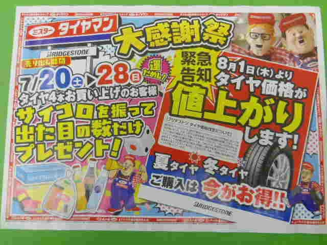 夏の大感謝祭 お知らせ ミスタータイヤマン 柳井店 山口県のタイヤ カー用品ショップ ブリヂストンのタイヤ専門店